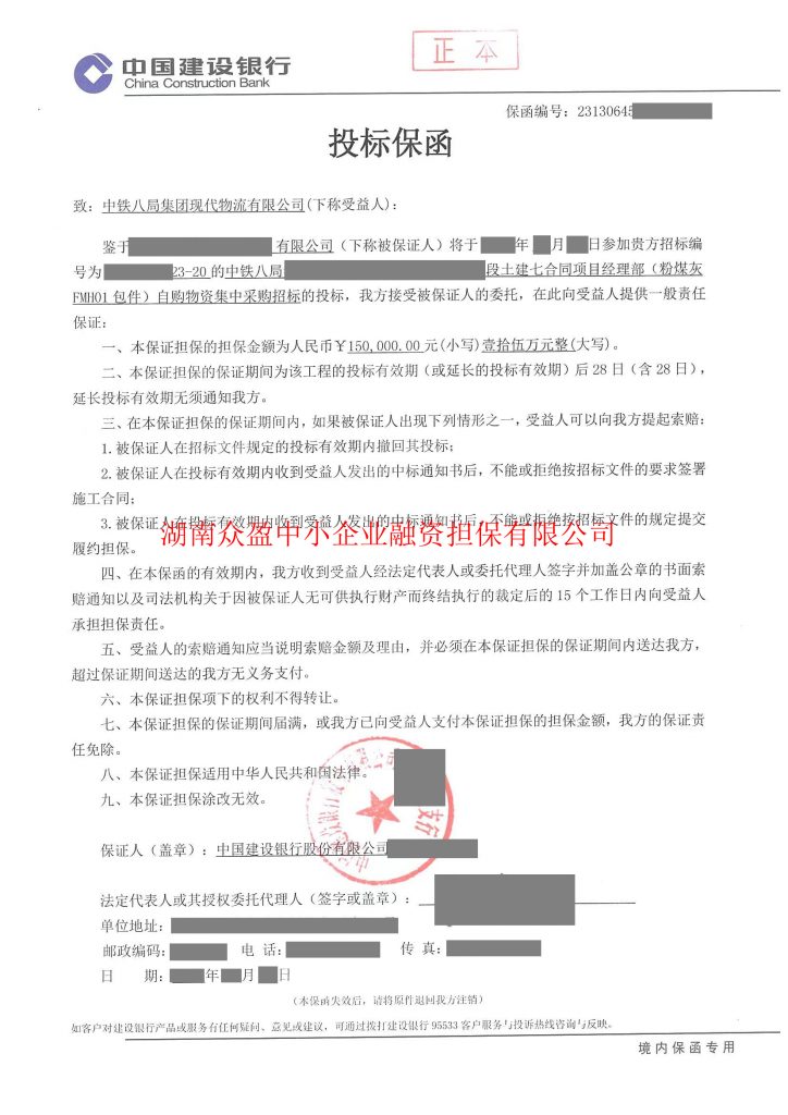 出具银行投标保函、商业投标保函